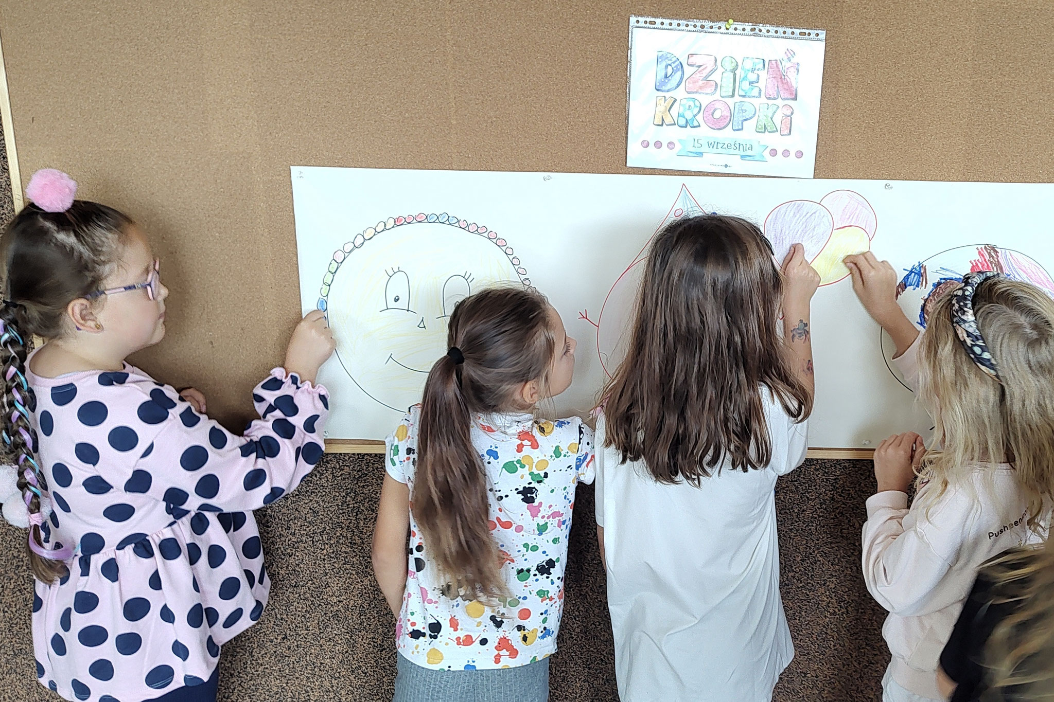 15 września nasza szkoła obchodziła Międzynarodowy Dzień Kropki, który promuje kreatywność, wiarę w siebie i współpracę. Inspiracją do obchodów była książka „The Dot” autorstwa Petera H. Reynoldsa, która opowiada o odkrywaniu talentów i odwadze do działania.