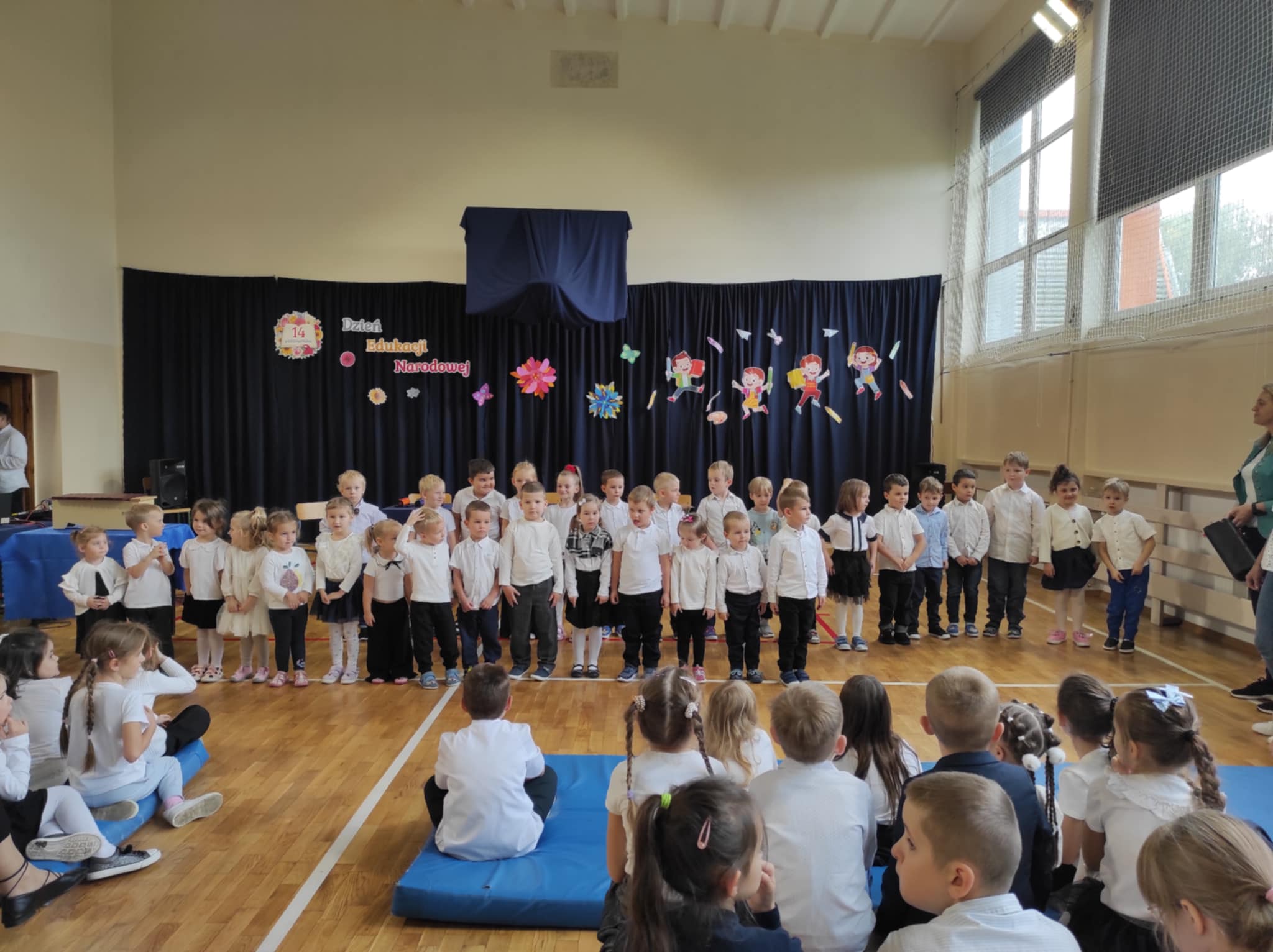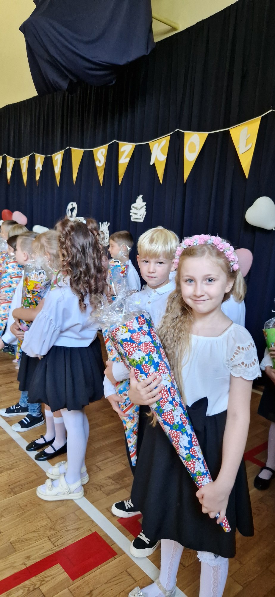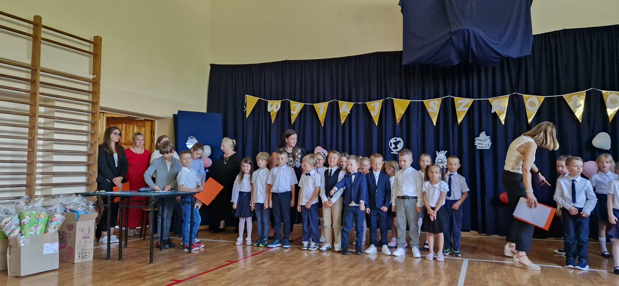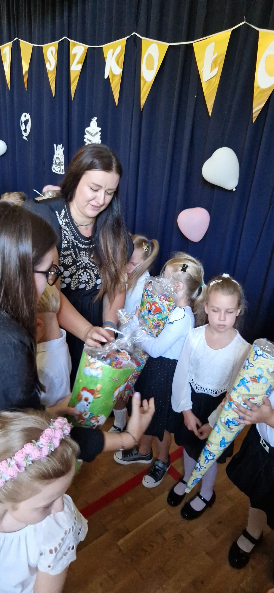 W wyjątkowej atmosferze, w obecności rodziców, uczniowie klas 1a i 1b zostali uroczyście przyjęci do społeczności szkolnej. Ceremoniał poprowadzili ich starsi koledzy z klasy 4 a, którzy z dumą wprowadzili pierwszoklasistów w szkolne życie. Kulminacyjnym momentem wydarzenia było pasowanie na ucznia, którego dokonała pani dyrektor Marta Porębska. Na zakończenie uroczystości wychowawcy wręczyli dzieciom rogi obfitości – symbol radości, dostatku i nowych szkolnych przygód i zabrali swoich uczniów i rodziców do klas.