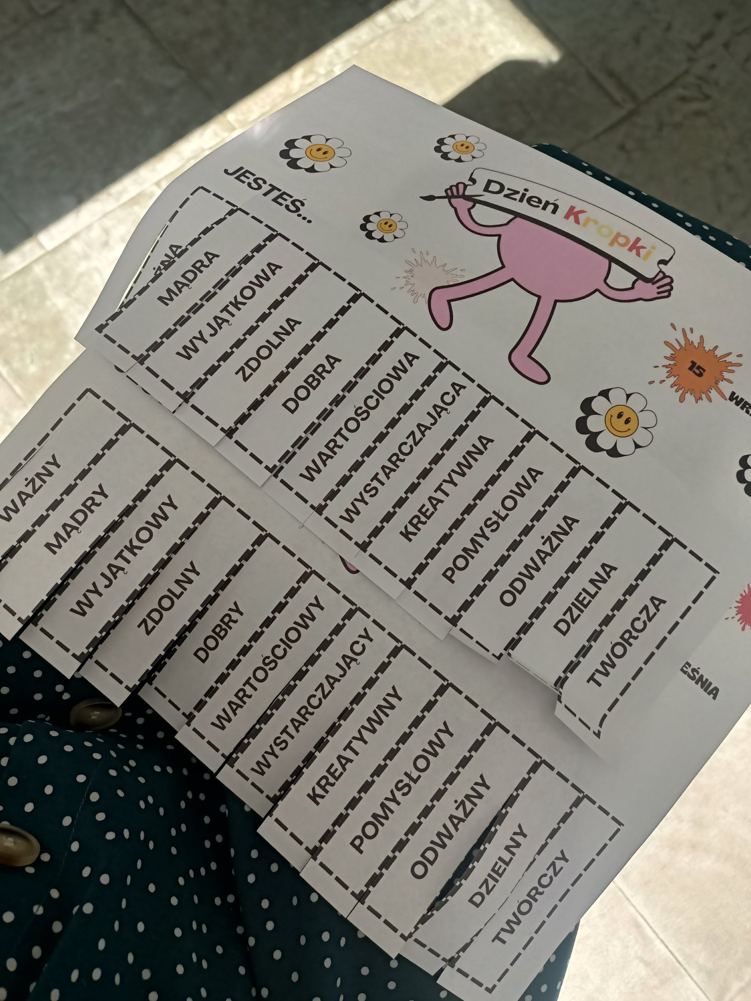 Tego dnia uczniowie wzięli udział w warsztatach plastycznych, tworząc prace inspirowane motywem kropki. Powstały kolorowe dzieła, które ozdobiły szkolne korytarze. Zajęcia łączyły sztukę z kreatywnym myśleniem i zabawą.
