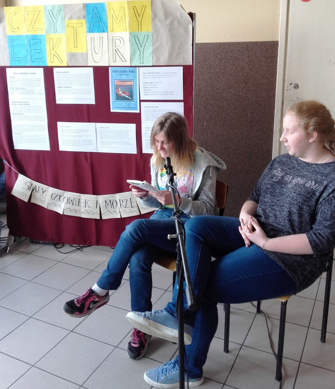 Czytaliśmy „Starego człowieka i morze”, doczytaliśmy do połowy książki, resztę można doczytać chociażby ze streszczenia, które znajduje się na gazetce zawierającej informacje o tej lekturze.