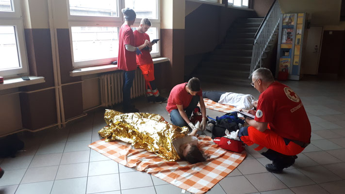 Pozorowane wypadki przygotowywane są przy użyciu profesjonalnych środków (sztuczna krew, pudry, farby charakteryzacyjne itd.) oraz rekwizytów i wyglądają bardzo realistycznie. W tym roku ze względu na pogodę zawody odbyły się w naszej szkole.