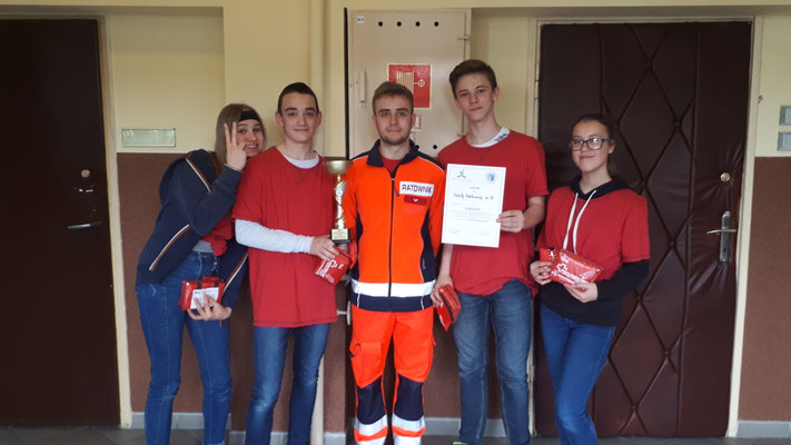 Należy pamiętać, że pierwsze minuty po wypadku decydują o zdrowiu i życiu osób poszkodowanych. Zawody były bardzo emocjonujące. Zawodnicy musieli wykazać się znajomością zasad pierwszej pomocy, np. oparzenia, otarcia, czy wypadku samochodowego.Dla naszej drużyny dodatkowym wyzwaniem był brak piątego zawodnika. Z tego powodu tym większe słowa uznania należą się Pawłowi, Oliwii, Patrykowi i Wiktorii.