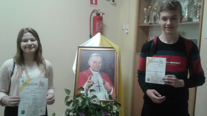 Uczniowie naszej szkoły po raz kolejny wzięli udział w gminnym konkursie "Jan Paweł II - Papież Młodych", poświęcony wiedzy o życiu i pontyfikacie papieża. Konkurs miał formę multimedialnego testu. W dwuosobowych drużynach uczniowie udzielali odpowiedzi na wiele pytań.