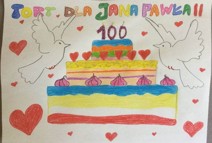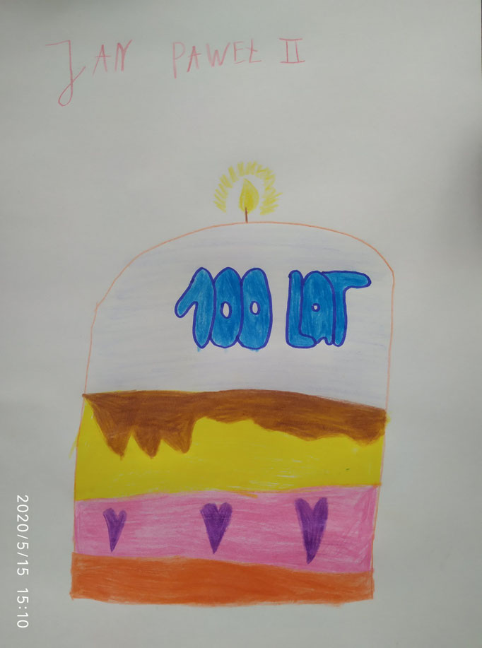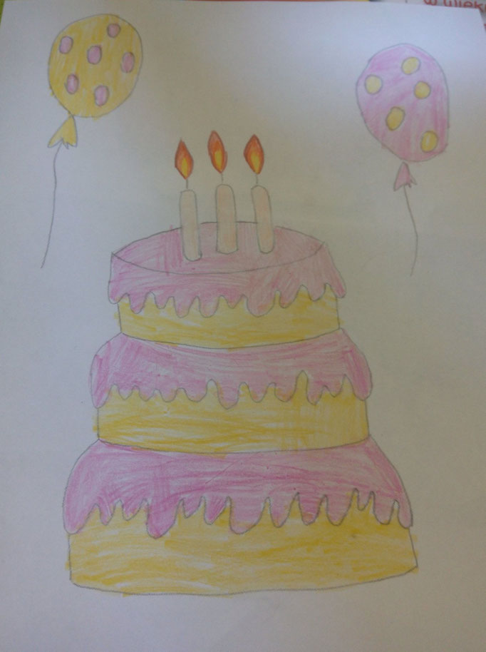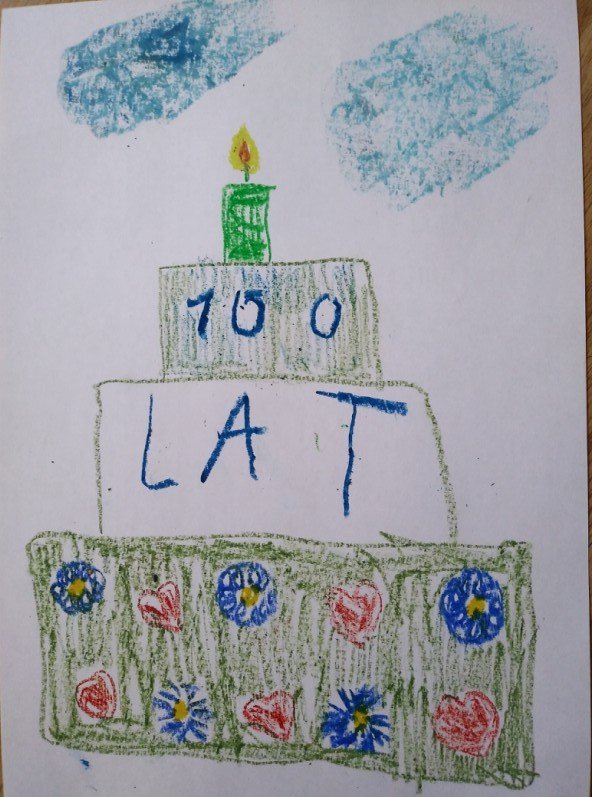 Poniżej prace plastyczne, w tym torty urodzinowe od najmłodszych uczniów naszej szkoły.