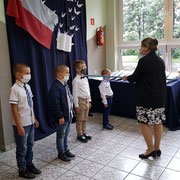 01.09.2020 roku o godz.11.00 oficjalnie powitaliśmy i przyjęliśmy Pierwszoklasistów w naszej szkole. Uczniowie wraz z Rodzicami spotkali się z Dyrekcją szkoły Panią Martą Porębską i Panią Agatą Krywult . Było to również pierwsze spotkanie z wychowawcą klasy Panią Iwoną Polaczek oraz z kierownikiem świetlicy Panią Katarzyną Kościelny.