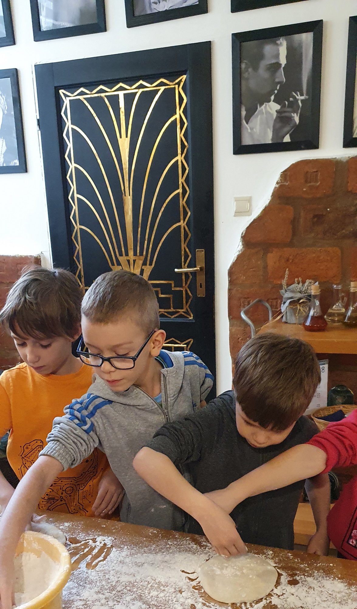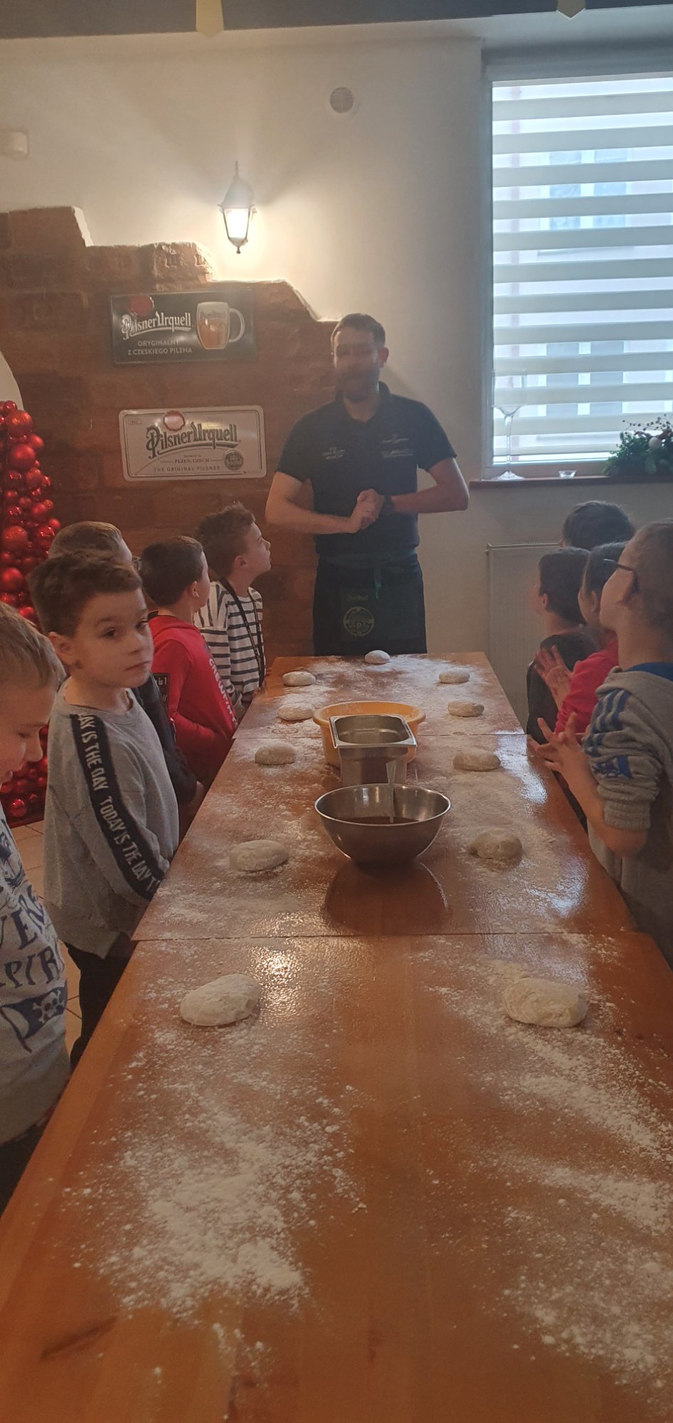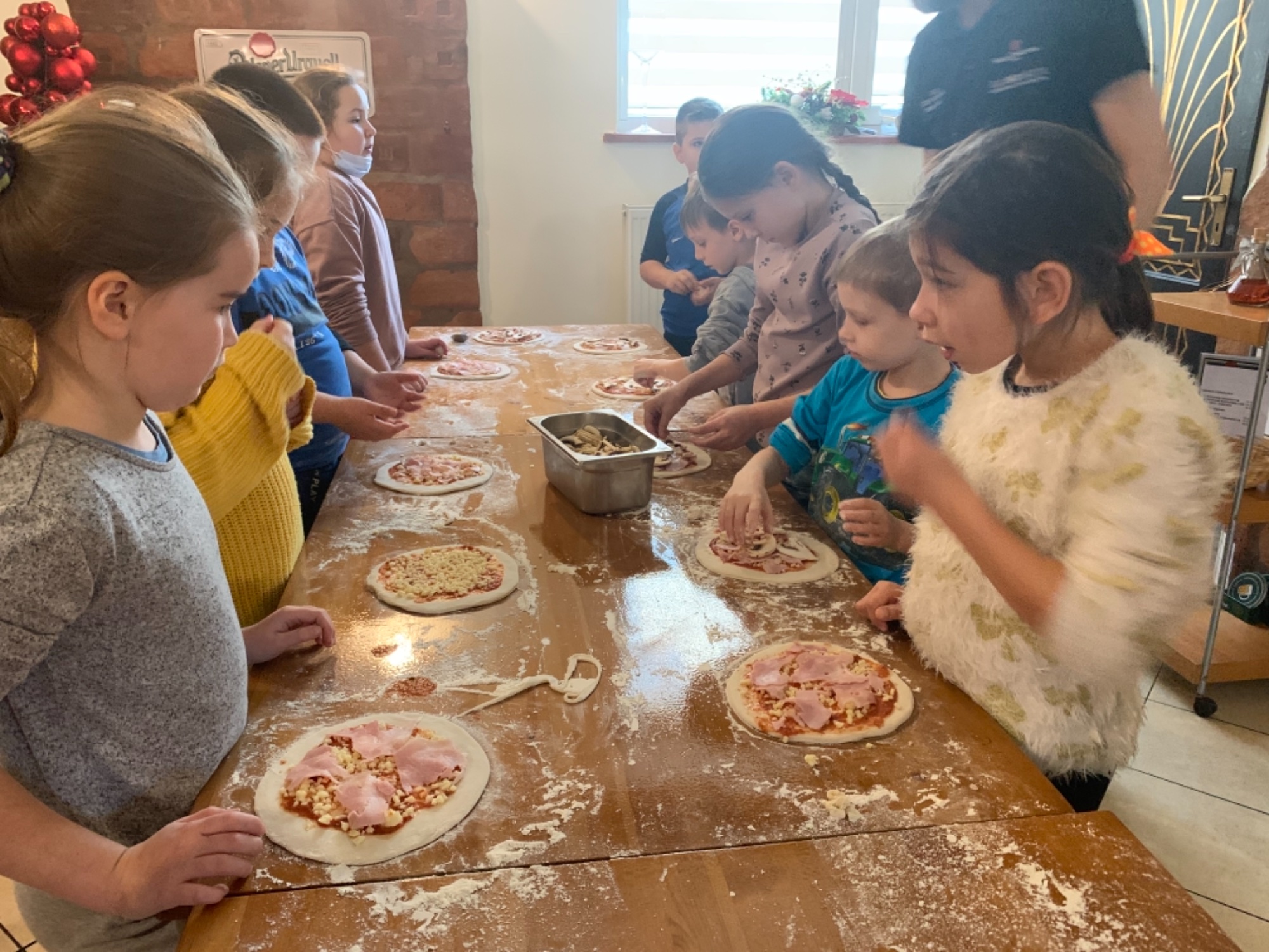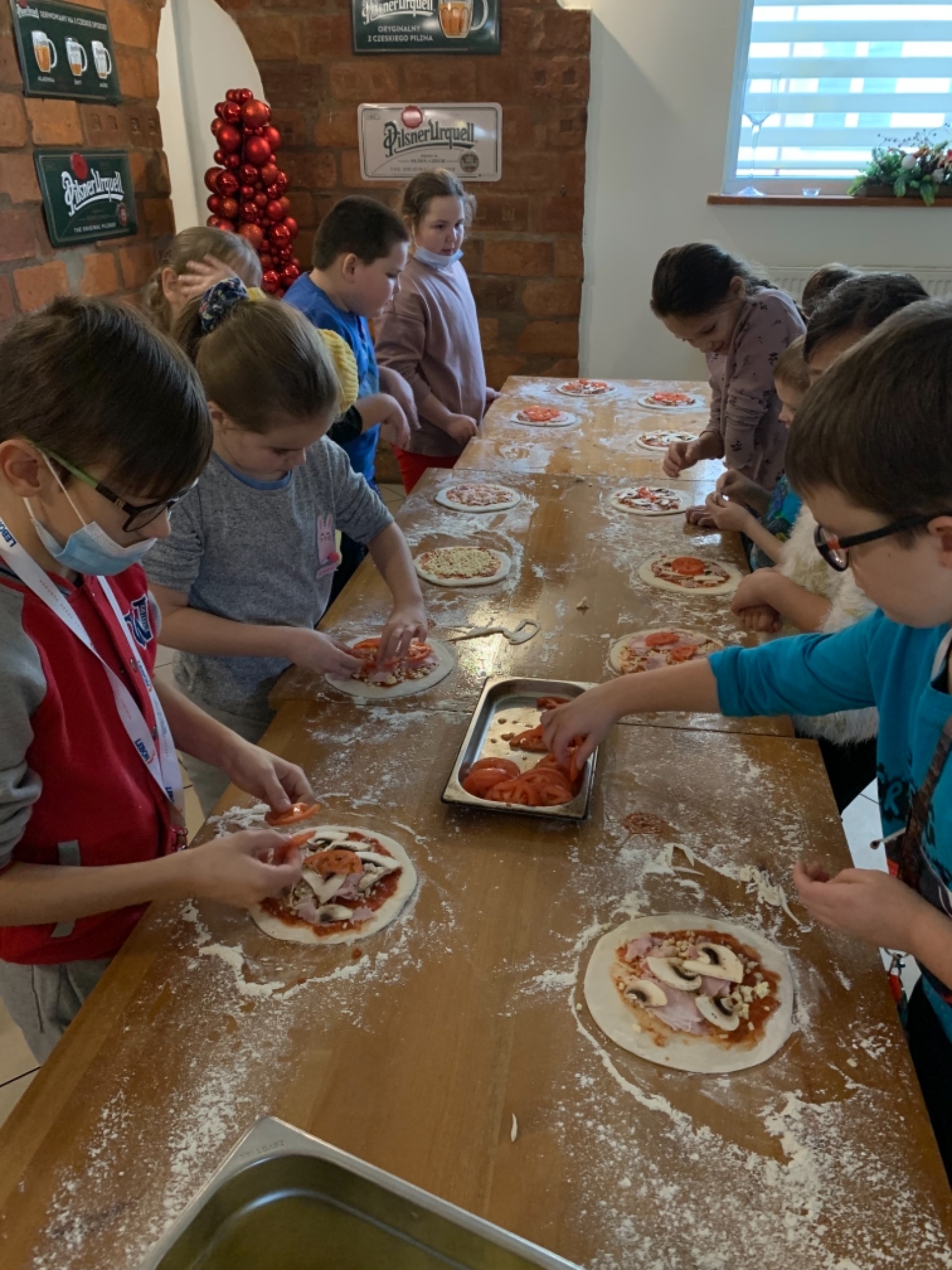 Gotowanie jest trochę jak magia: przetwarzanie surowców na żywność angażuje wszystkie zmysły! Uczniowie z klasy 1 i 2 doświadczyli tego uczestnicząc w warsztatach z robienia pizzy w restauracji Kalendarium. Dzieci dowiedziały się skąd pochodzi pizza, jakie składniki wykorzystuje się do jej przygotowania i dlaczego czasami mniej znaczy lepiej :) Pod kierunkiem doświadczonego kucharza każdy przygotował swoją ulubioną pizzę.